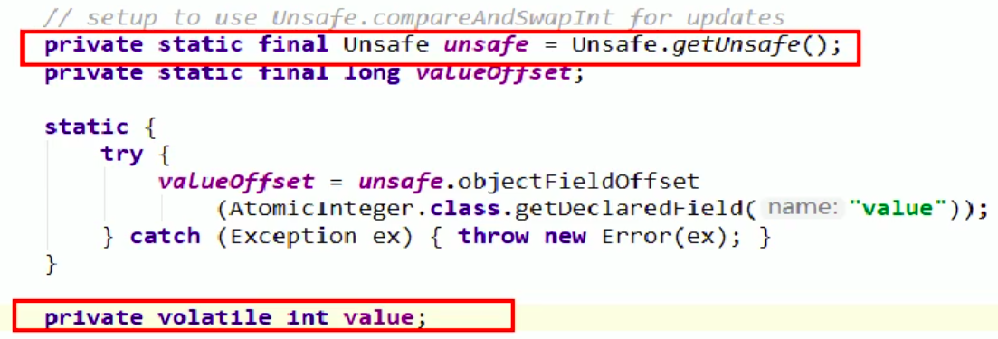 注意 UnSafe 类中所有方法都是native修饰的,也就是说UnSafe类中的方法都直接调用操作系统底层资源执行相应任务 - 变量valueOffset ,表示该变量值子啊内存中的偏移地址,因为UnSafe就是根据内存偏移地址获取数据的。