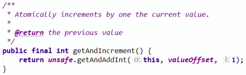 return unsafe.getAndAddInt(this, valueOffset, 1);