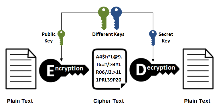 又称为公开密钥加密,加密和解密使用不同的密钥。