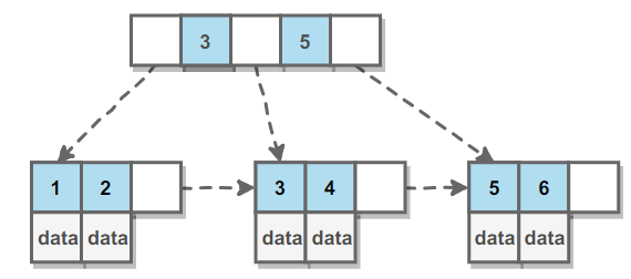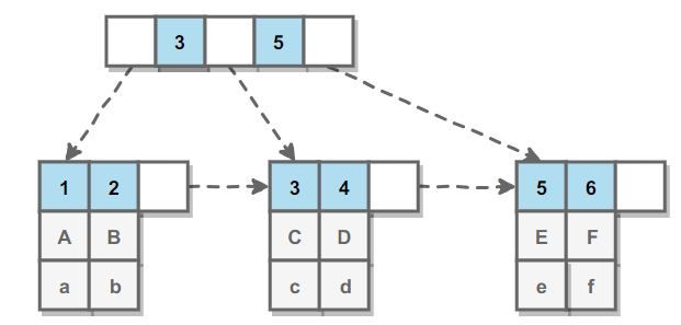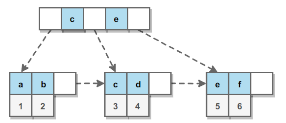 在 B+ Tree 中,一个节点中的key从左到右非递减列,如果某个指针的左右相邻 key 分别是 keyi 和 keyi+1,且不为null,则该指针指向节点的所有 key 大于等于 keyi 且小于等于 keyi+1.